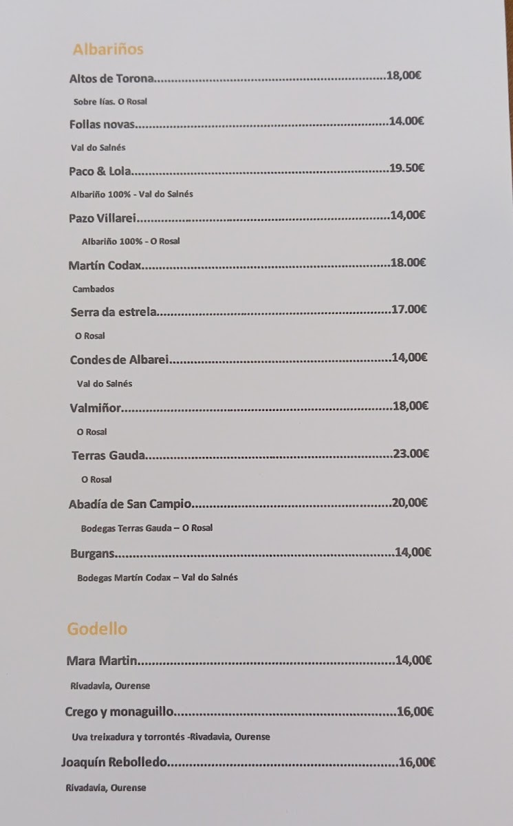 “ Pulpo a feira EXQUISITO. Servicio atento rápido y efectivo pese a estar a tope el sitio. Recomiendo reservar o llegar muy temprano. Todo exquisito y buenos vinos. ”